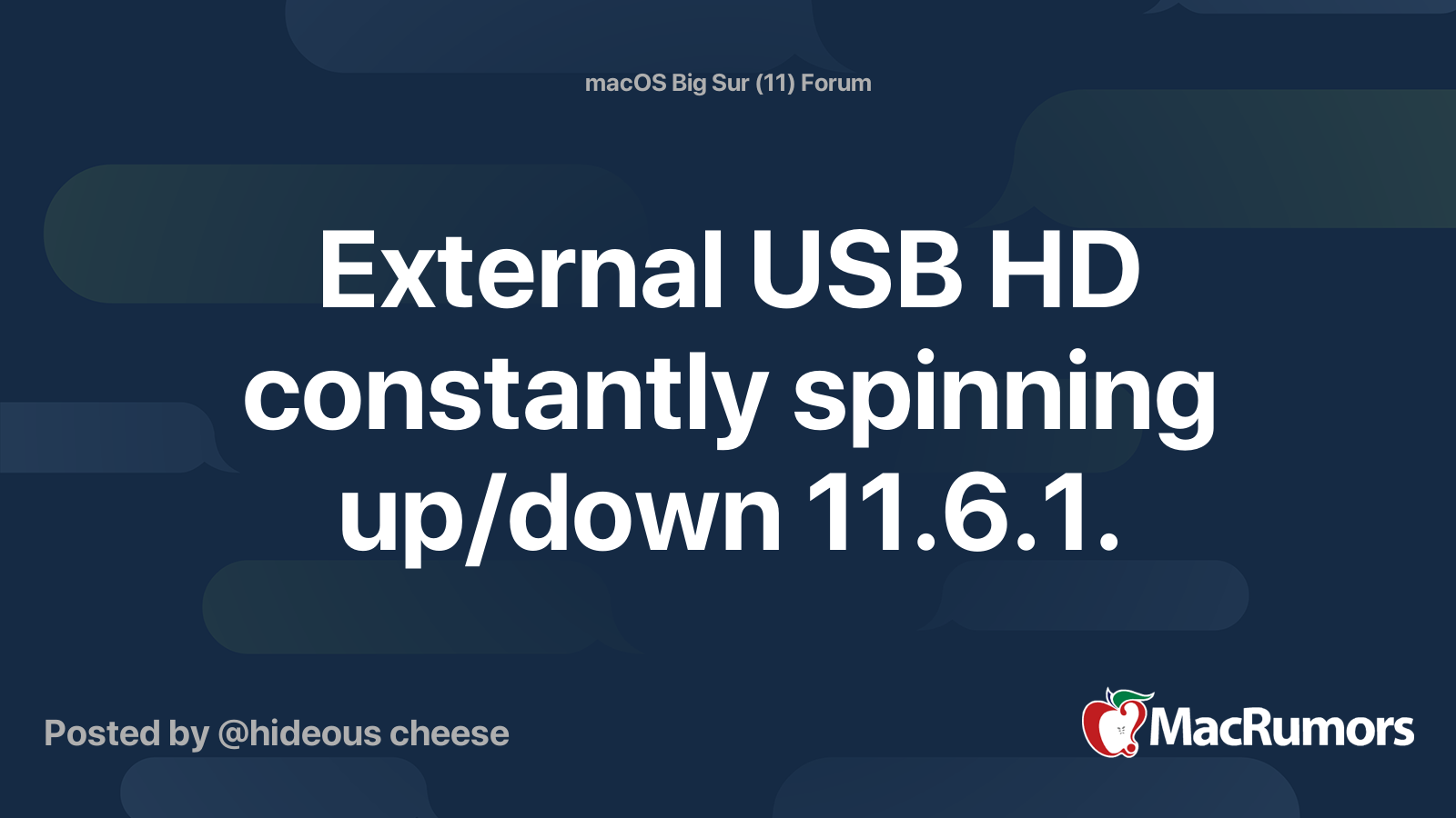 Anyone else noticing this? I updated from 11.6 to 11.6.1 on Monday. Today I'm noticing that my WD Elements desktop drive keeps on spinning down and up. Its externally powered and plugged directly into a USB port on my M1 iMac. I had no problems prior to the update. Example from this evening -...